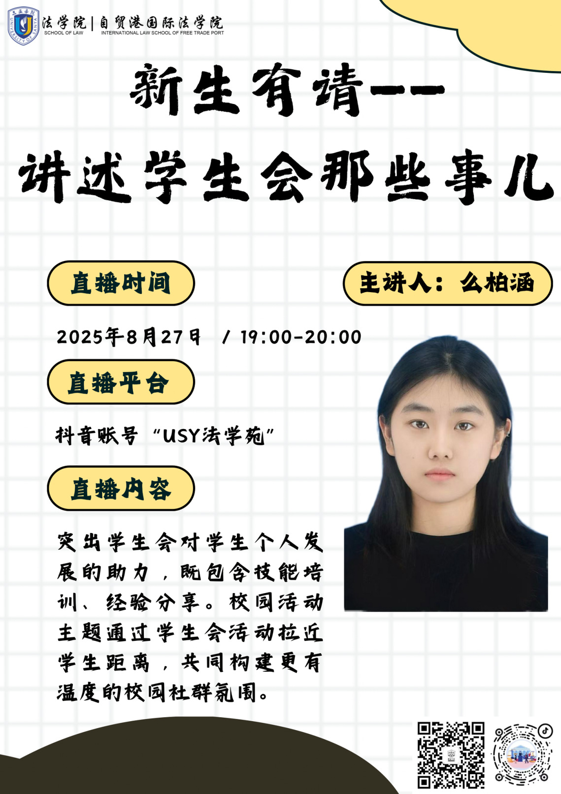 新生答疑|直播预告|新生有请——讲述学生会那些事儿