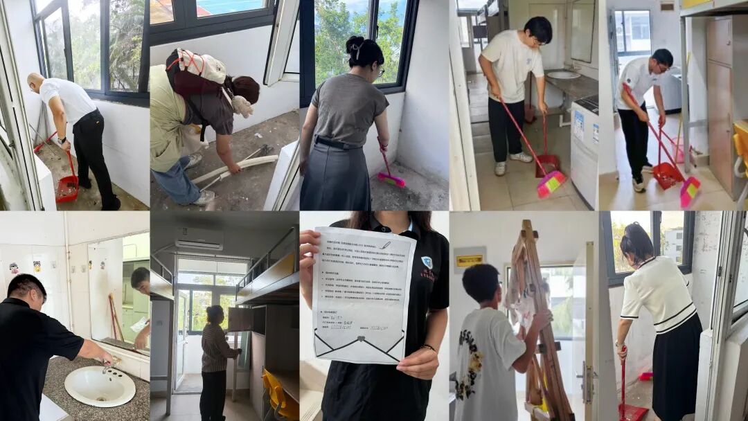 随着新生报道时间的逐渐拉近,相关基础设施的清理与排查也进入了白热化的阶段。法学院与自贸港国际法学院于9月9日晚组织开展新生宿舍收官清扫主题党日活动。本次活动由党总支副书记王子龙带队,学院教师党员代表以实际行动践行“为人民服务”的根本宗旨,让鲜红的党旗在迎新一线高高飘扬。