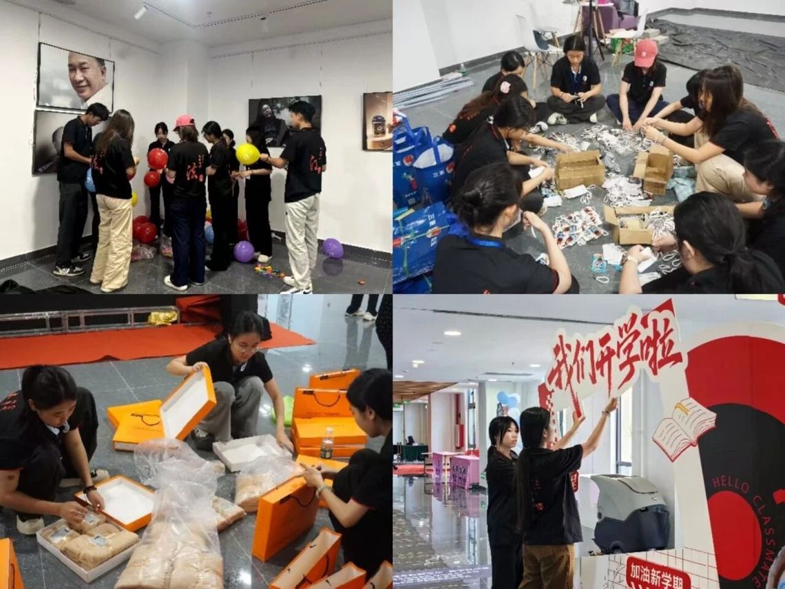 我院为迎新活动布置场地。动员会结束后,团学组织成员们迅速行动起来,投入到场地布置工作中。他们分工明确,部分成员负责搬桌子椅子,将其摆放得整齐有序;部分成员负责悬挂气球和装饰品,让迎新现场变得五彩斑斓,为活动的顺利开展做好准备。大家齐心协力,不怕辛苦,经过几个小时的努力,终于将迎新场地布置得焕然一新。整个场地充满了温馨、热烈的氛围,仿佛在张开双臂,欢迎新生们的到来。