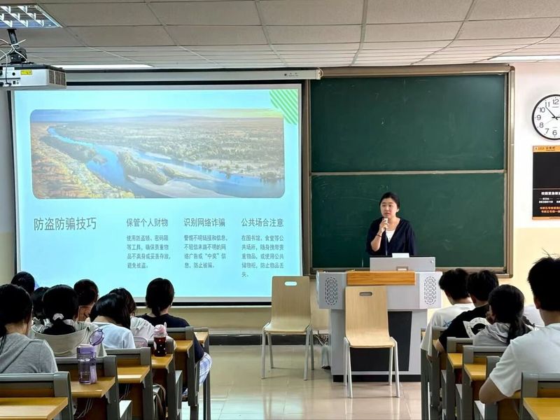 9 月 15 日,为切实提升新生安全防范意识与自我保护能力,法学院自贸港国际法学院(以下简称“我院”)组织开展新生安全教育专题课程。本次专题课程由董津语老师和刘悦老师讲授,我院全体新生现场参与,围绕七大核心板块系统普及安全知识,为新学期校园安全筑牢屏障。
