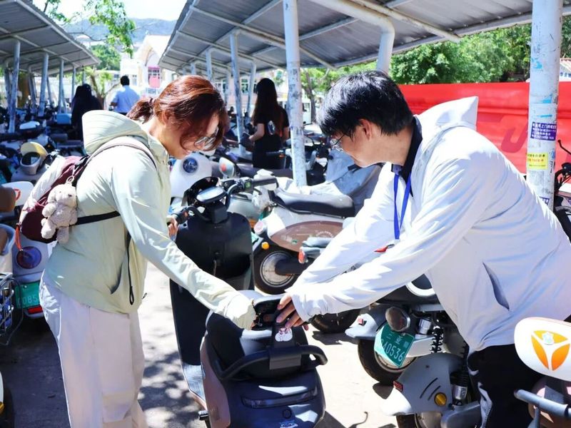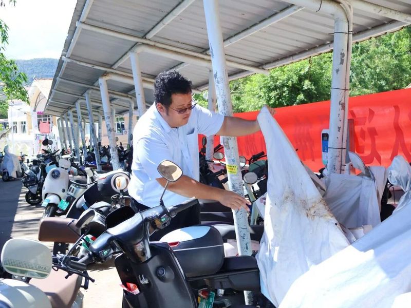 团学组织成员们不放过任何一个可能积水的地方,电车、头盔、花盆托盘、垃圾桶周边等,只要有污水的地方,就有他们忙碌的身影。在清理电车和头盔上的污水时,成员们格外细心,确保没有残留的积水。有的成员还主动帮助同学们检查车辆,提醒大家及时清理可能存在的积水。在清理过程中,大家分工明确、配合默契。
