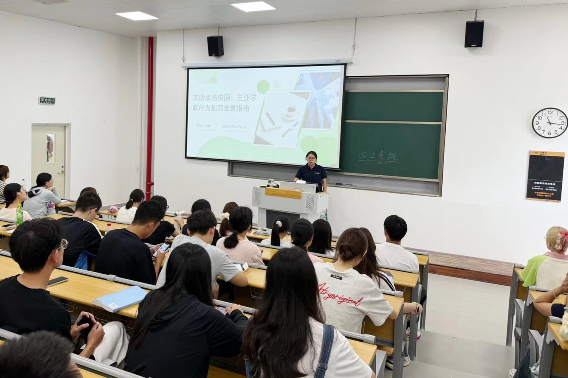 为帮助25级新生尽快融入校园生活,规范校园文明,法学院(自贸港国际法学院)(以下简称“我院”)组织了文明校园行为规范专题课程,由思想导师刘悦,肖琳围绕课堂、宿舍、公共场所等多维度解读文明规范为同学们授课。