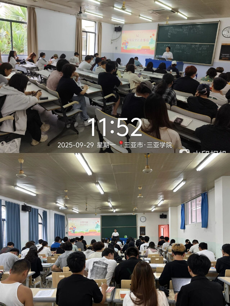 假期在即,同学们注意休息的同时也要把安全置于首位。为了提升同学们的假期安全防范意识,法学院(自贸港国际法学院)(以下简称“我院”)各班级积极组织召开了假期安全主题班会,团委副书记曹添与思想导师董津语、刘悦、肖琳、史钊堃、潭孝明通过开展主题班会逐项解读并明确假期“安全底线”,确保同学们度过一个安全的假期。
