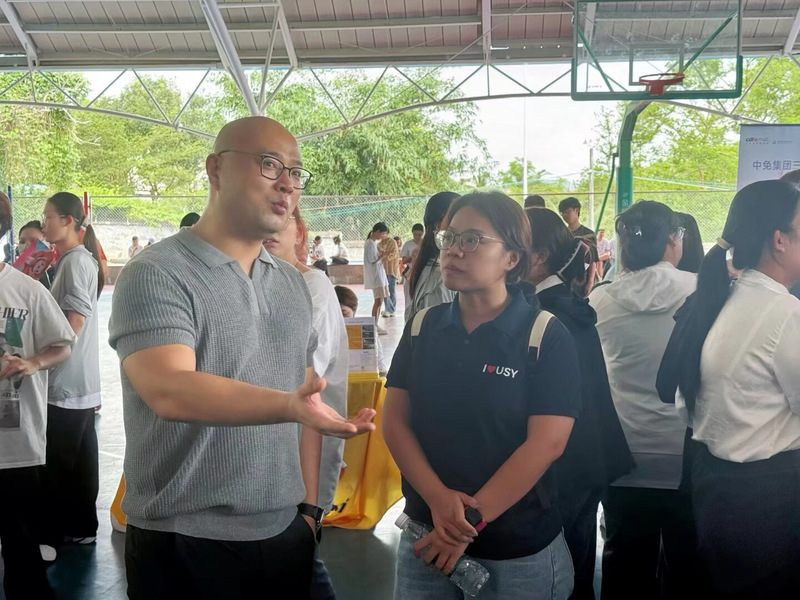 本次招聘会以“聚四方之才 共建自贸港”为愿景,为海南学子搭建起了一座扎根故土、逐梦未来的职业桥梁。我校的管理学院院长王云凤致词表达欢迎与期望,并邀请了优秀企业代表发言。这场专场招聘会不仅为三亚学院的学子们提供了丰富的就业选择,更向所有有志于参与自贸港建设的青年发出了诚挚邀约。招聘会现场,王子龙书记,曹添书记与肖琳老师一同走访了多家企业,进行亲切的交谈,两位两位书记详细询问了各企业的招聘需求、行业发展前景,以及对高校人才培养的建议。两位书记希望通过政校企三方联动,让更多海南学子扎根自贸港、建功自贸港,实现个人发展与区域建设的同频共振。