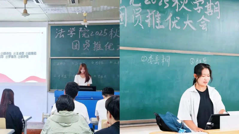 为规范发展团员工作,保证新发展团员质量,持续为团组织注入新鲜血液,助力共青团组织建设,法学院(自贸港国际法学院)(以下简称“我院”)于2025年10月17日组织开展入团推优大会,由各班团支书主持,团委组织部及全体团员参加大会。
