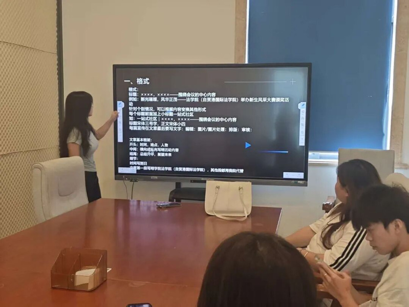 为进一步提升法学院(自贸港国际法学院)(以下简称“我院”)思想导师助理们的综合能力,增强新闻稿撰写的专业性。我院通讯社组织开展了一场关于新闻稿内容规范与结构优化的专题培训。本次培训由王琳琳同学担任主讲。