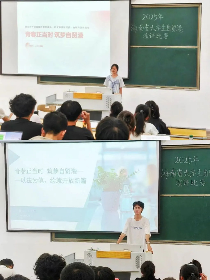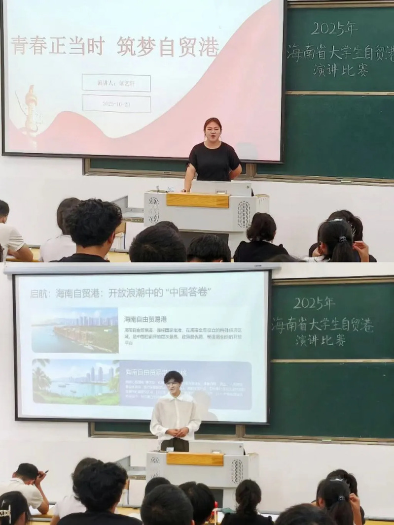 参赛的同学们针对此次主题对海南自贸港的概况和带来的机遇以及身处于这片热土的我们应该怎么做进行了精炼的讲解。让“青春”与“自贸港”不再是各自独立的词汇,而是融为一体的使命:自贸港为青春搭建了逐梦的舞台,青春则要为自贸港的发展注入最澎湃的力量。不少同学都提到:我们这一代青年,是自贸港发展的“见证者”,更该是“建设者”。自贸港的开放政策,给了我们接触国际前沿的机会;自贸港的产业布局,为我们提供了跨界发展的舞台。青春的价值,从来不是在安稳中消磨,而是在机遇中突破——自贸港给了我们“敢闯敢试”的底气,我们就要拿出“敢为人先”的勇气。同时,我院积极参与自贸港建设,加强对学生的培养,注重实践的落实,以开放的姿态与自贸港共赴下一场山海。