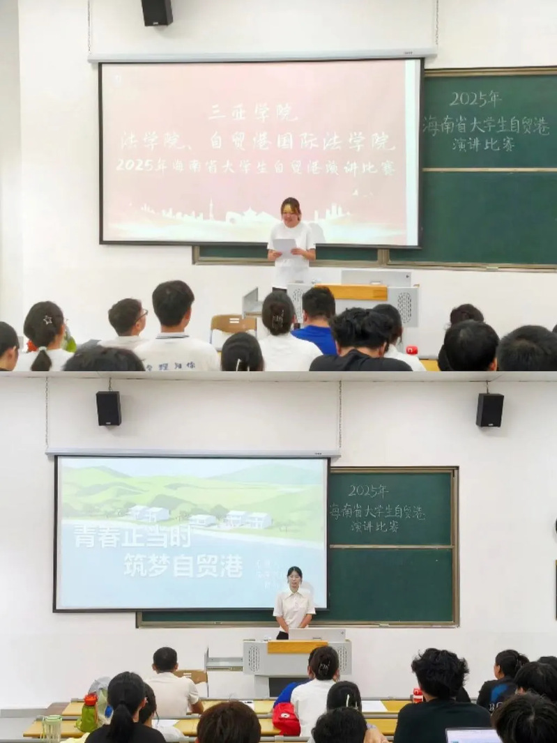 青春激扬,梦想启航,法学院(自贸港国际法学院)(以下简称“我院”)在2025年10月29日进行了“青春正当时,筑梦自贸港”2025年海南省大学生自贸港知识竞赛主题演讲,团委副书记曹添和思想导师刘悦、史钊堃、潭孝明出席。