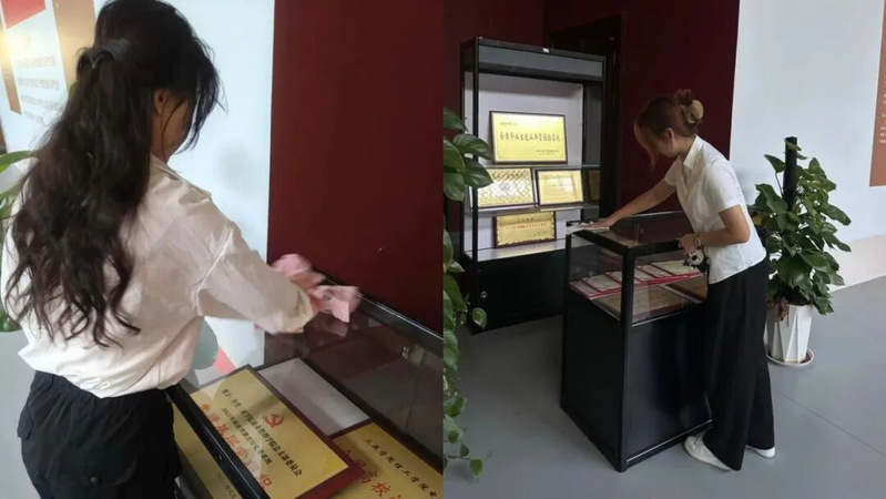 到达党建大厅后,大家首先对大厅整体环境进行了全面排查,明确清扫重点区域和具体任务。从入口处的宣传栏到党员活动室的桌椅,从走廊的地面到墙角的卫生死角,按照“先整体后局部、先清扫后擦拭”的思路有序推进。面对地面的灰尘和杂物,他们弯腰认真清扫,不放过任何一个角落;针对门窗玻璃上的污渍,他们用湿抹布反复擦拭,直至玻璃洁净透亮;对于桌椅、文件柜等公共设施,他们逐一进行擦拭消毒,确保环境安全卫生。清扫过程中,遇到难以清理的顽固污渍,他们耐心用清洁剂喷洒、刷洗,汗水浸湿了衣衫也丝毫没有懈怠。