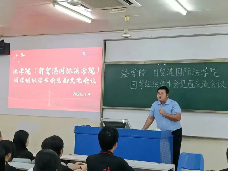 为了部门时间能够实现更加有效的沟通,法学院(自贸港国际法学院)(以下简称“我院”)在2025年11月4日于书明楼召开团学组织学生会见面交流会。本次活动由学生会负责人进行组织,我院团委副书记曹添出席,团学组织各部门负责人、学生会副部级及干事们参加。会议主要介绍了团学组织学生会的发展历程、理念和目标,让成员们互相熟悉,为后续高效工作打下坚实基础,激发成员们的归属感与协作动力。