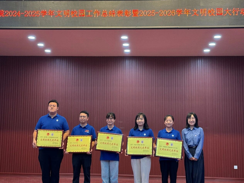 在我校校园文明建设总结表彰中,我院展现了在文明育人工作中的示范引领作用。团委副书记曹添代表我院就校园文明建设的推进情况、工作成效及未来规划作了系统发言。
