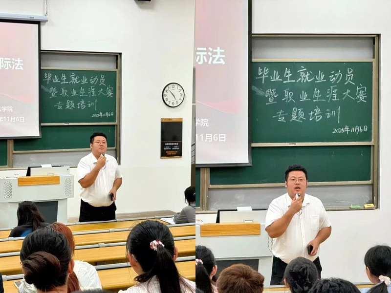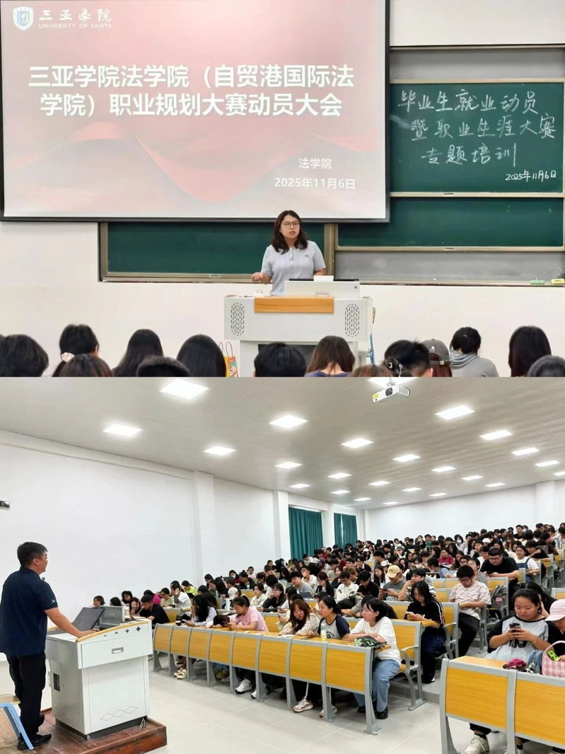 为切实提升2026届毕业生的就业竞争力,助力其顺利迈入职场,2025年11月6日,法学院(自贸港国际法学院)(以下简称“我院”)于书德楼416、417教室成功举办了2026届毕业生就业动员大会暨职业生涯大赛专题培训。本次活动由我院思想导师董津语、肖琳共同主持,党总支副书记王子龙、团委副书记曹添以及思想导师史钊堃、潭孝明出席,此次活动通过系统的就业指导和赛前培训,成功帮助学生明确职业方向、增强求职能力,为他们从校园走向职场搭建了关键的桥梁,注入了前行的信心,奠定了坚实基础。