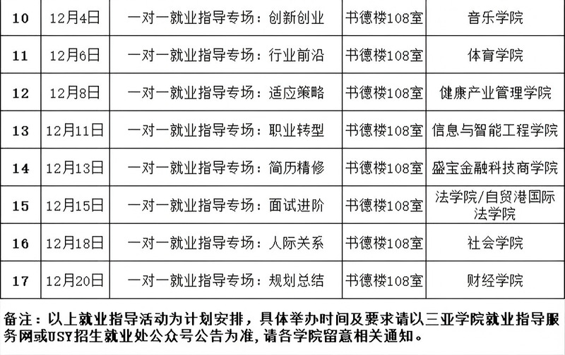 1.招聘会当天三亚学院将提供免费参会展位,每个用人单位一个展位,配备一张桌子、三把椅子(招聘方2把,应聘者1把);