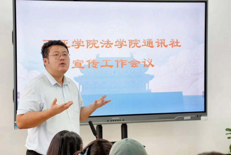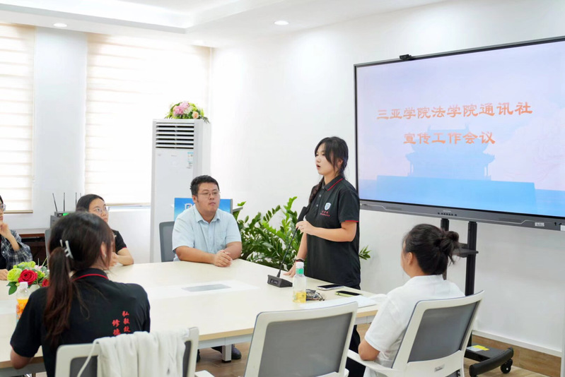 2025年11月11日,法学院(自贸港国际法学院)(以下简称“我院”)于书明楼法学院会议室召开通讯社宣传工作会议。我院团委副书记曹添、通讯社负责人刘悦老师、各部门负责人和通讯社全员出席会议。本次会议系统介绍了通讯社的整体架构与工作内容,并强调了宣传工作的重要性,进一步夯实通讯社宣传工作基础、提升团队成员专业能力,同时为后续工作的协同开展统一了思想与目标。