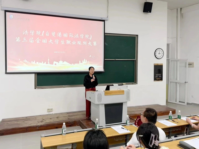 2025年11月15日下午,法学院(自贸港国际法学院)(以下简称“我院”)在书德楼417成功举办职业生涯规划大赛院赛。本次大赛分为成长与职业双赛道,吸引了我院各年级学生积极参与,15名选手通过初赛选拔晋级院赛。大赛特邀党总支副书记王子龙,团委副书记曹添作为嘉宾,法学系副主任胡宏雁,专业老师代旭辉、郭成、王华丽、张瀚文担任评委,旨在通过理论与实践相结合的平台,推动学生科学规划职业路径,强化综合素质,为海南自贸港建设培养具备国际视野与实务能力的法治人才。