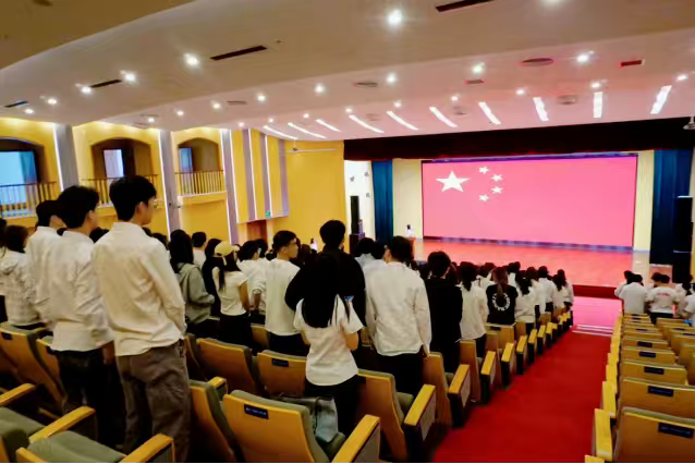 活动第二项,升国旗奏唱国歌。全体师生肃然起立,高唱中华人民共和国国歌。
