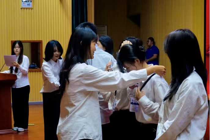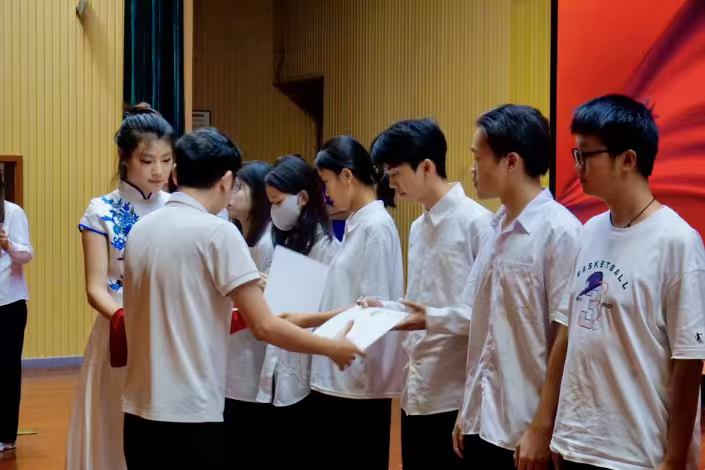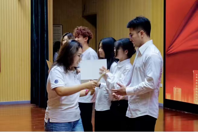 活动第十项,换届仪式。我院老师们依次为新一届学生干部代表颁发聘书,并为他们佩戴上象征职责与荣耀的胸牌。这一纸聘书、一枚胸牌,是信任的交付,更是使命的传递,寓意着团学工作的光荣传统与服务精神薪火相传。