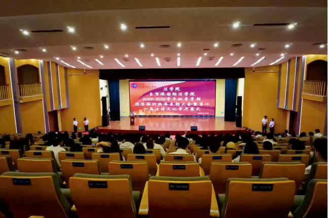 冬日和煦,华堂生辉。2025年12月7日下午,法学院(自贸港国际法学院)(以下简称“我院”)2025-2026学年秋季学期团学组织换届表彰大会在书山馆报告厅隆重召开。我院党总支副书记王子龙,团委副书记曹添,思想导师董津语、刘悦、肖琳、史钊堃、潭孝明,团学组织成员以及学生代表共同参加了这场凝聚共识、展望未来的盛会。