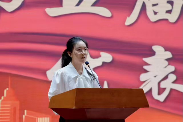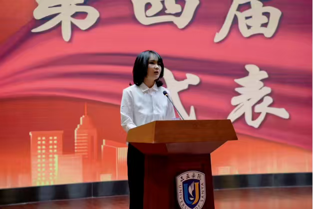 活动第六项,第四届主席团代表赵艾希发言,她深情回顾了在团学大家庭中的历练与收获,表达了对师长栽培与同侪扶持的感激。此外她还表示,新一届主席团必将承前启后,以更饱满的热情与更务实的态度服务学院师生。