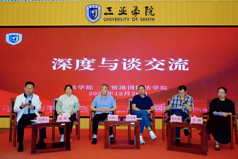 作为法学理论研究前沿的权威学者,张恒山教授在交流中开篇明义,直指传统“权利本位”理论的偏差,系统提出“义务重心”法学观。他从人类社会义务性规则先于权利性规则产生;义务性规则是规范人们行为、防范天然恶行与损他行为的主要法律规则成分;人类良心是道德规则与法律规则的本源;道德义务、法律义务与一般义务的概念界定,以及实证法学对义务理解的认知误区五个层面展开,认为法律的根本功能在于,通过义务性规则约束人性之恶、遏制损他行为,进而构建稳定有序的社会秩序。相较于权利“可为可不为”的选择性特征,义务的刚性约束才是支撑社会运转的核心基石。提出“三人社会模式”理论,阐释义务源于社会第三方,基于良心与理性作出的“应当”“不应当”“可以”的价值评判,这些评判凝聚为道德规则后,进一步转化为法律规则,故义务的本质是行为的“应当性”,根植于社会公共评价。张教授特别指出,国家立法必须尊重社会道德共识,否则将丧失正当性基础;义务并非对个人自由的限制,而是保障社会共同利益、实现权利的前提,体现了法律维护社会正义的根本宗旨。最后,张教授总结道,当代中国法治建设需彻底扭转“权利即善、义务即恶”的错误认知。从本源来看,义务生于道德、源于良心;从价值导向来看,义务引导人们追求高尚品行;从实践功能来看,义务具有防恶止损、倡善利他、扶弱抑强的重要作用,在自贸港封关运作的当下,更是维护社会和谐稳定、保障开放发展的理论基石。