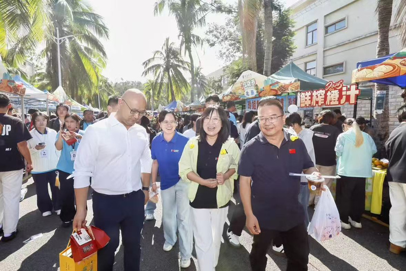 12月26日,三亚学院(以下简称“我校”)椰林广场再次迎来了一年一度的美食盛会——第八届吃货节。本次活动以“食聚八方,乐享其味”为主题,汇集了来自全国多个省份的特色美食与精彩表演。我校校长沈建勇教授,副校长高一兰教授,校长助理贾朋社教授,莅临法学院(自贸港国际法学院)(以下简称“我院”)摊位,我院党总支副书记王子龙,团委副书记曹添以及思想导师史钊堃、刘悦、肖琳、董津语、羊侯锦等亲临现场,与团学组织的同学们一同推介各地美食,共品佳肴,同享欢愉。