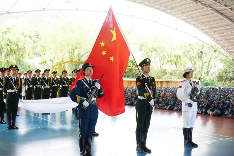 随后,三亚市吉阳区武装部负责人在致辞中强调,军训是国防教育重要载体,能提升团队协作能力,更能传承爱国情怀,希望新生尊重教官、听从指挥,在训练中收获成长,并宣布三亚学院2025级本科生军训正式开始。