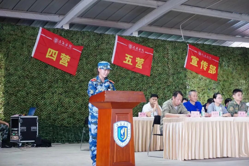 随后三亚学院(以下简称“我校”)副校长高一兰教授讲话。她指出,军训是新生迈入大学的重要一课,更是践行“走进校园是为了更好走向社会”办学使命的开篇实践。本次军训将对全体参训人员提出四点要求:以奋斗之姿笃行校训精神,锤炼抗压能力与创新思维;以敬畏之心传承优良作风,练就强健体魄、涵养高尚品德;以协同之力筑牢集体意识,培养团队精神与集体荣誉感;以科学之策守护安全底线,保障训练安全有序开展。
