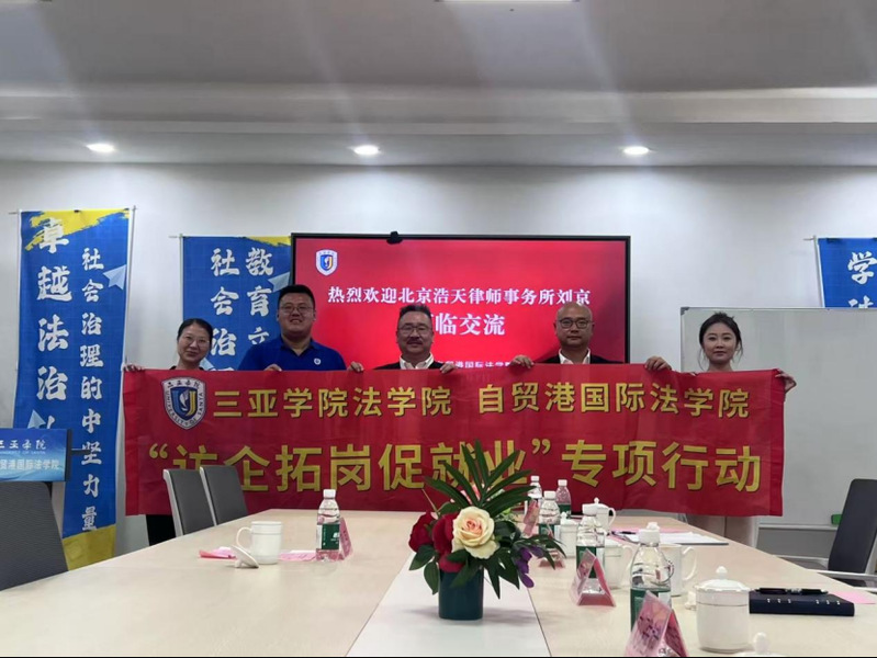 2026年1月7日下午,北京浩天律师事务所合伙人刘京律师一行到访三亚学院法学院(自贸港国际法学院),与学院领导班子举行专题座谈。双方围绕海南自贸港建设背景下,如何协同培养具有国际视野的法治人才展开务实交流,并达成多项合作意向。