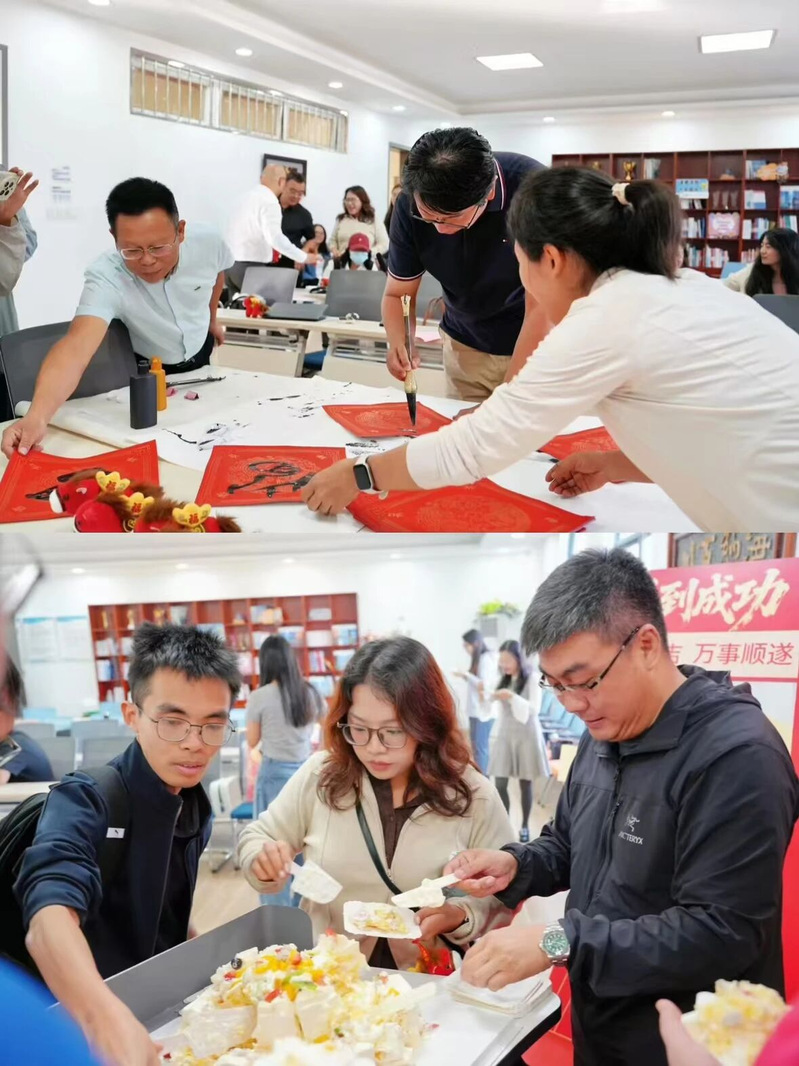 在“福州新岁一手写送祝福”活动中,老师们在笔墨间寄托对学院与彼此的美好祝愿。随后在场的老师共同切分蛋糕,将大会的喜庆气氛与对未来的甜蜜期盼推向新的高点。