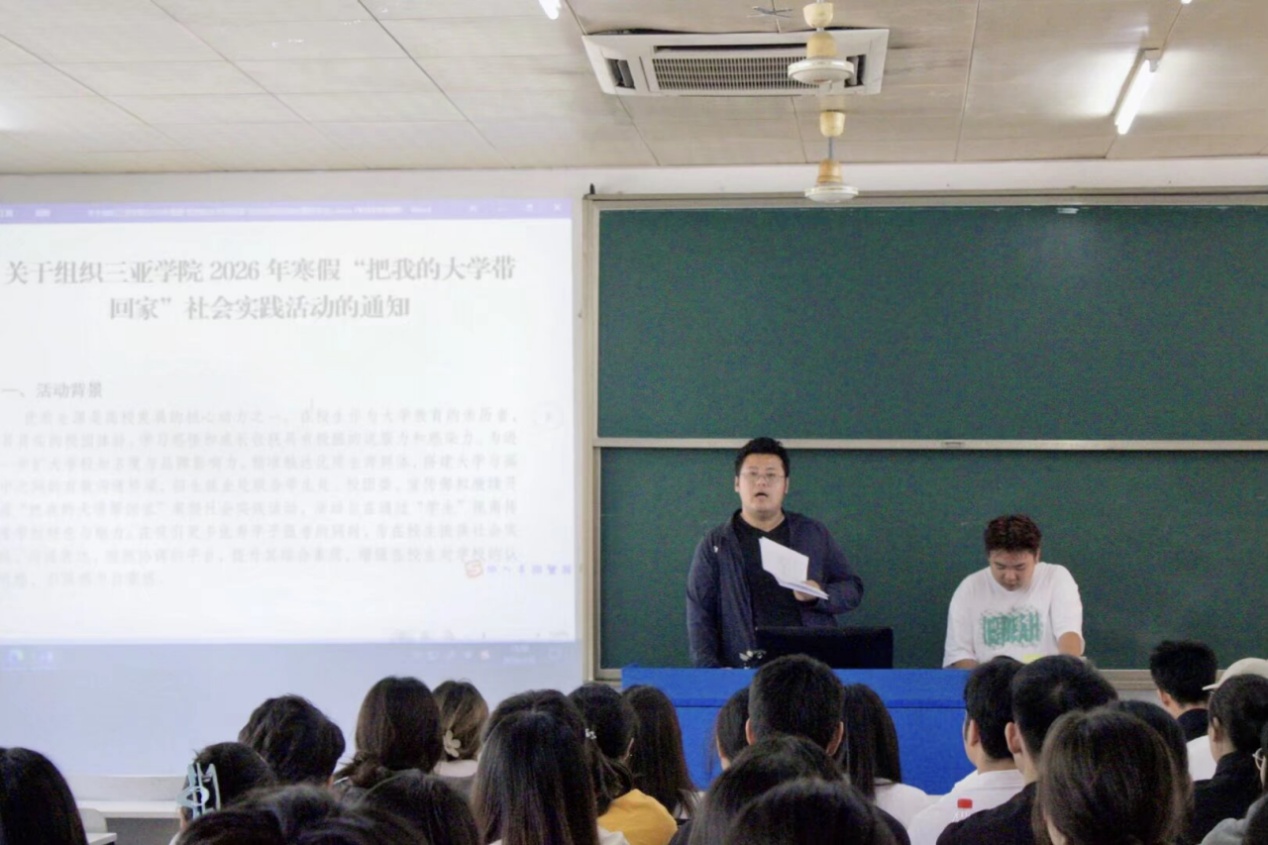 会议开始前,曹书记围绕活动的核心意义、实践要求与责任担当展开深入交流。他指出,23级、24级党员及入党积极分子作为我院发展的亲历者与受益者,在校园生活中积累了丰富的成长感悟,也见证了三亚自贸港建设背景下我院的发展变迁。此次“大学带回家”活动,为同学们提供了一个分享校园故事、宣传学校优势的重要平台,既能让家乡亲友、学弟学妹深入了解我院的办学特色、育人成果与发展机遇,也能在实践中锤炼同学们的沟通表达能力与责任担当意识,是提升思想觉悟、践行党员使命的重要契机。