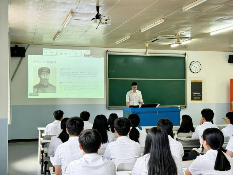 在讲解雷锋精神的内涵时,董宸宏同学从“为人民服务”的核心出发,深入剖析了雷锋同志爱岗敬业、艰苦奋斗、勤俭节约、助人为乐等优秀品质。他指出,雷锋精神不仅属于那个火热的年代,更在新时代焕发出新的光彩。无论是抗疫一线的志愿者,还是扎根基层的普通党员,都在用行动诠释着雷锋精神的时代意义。