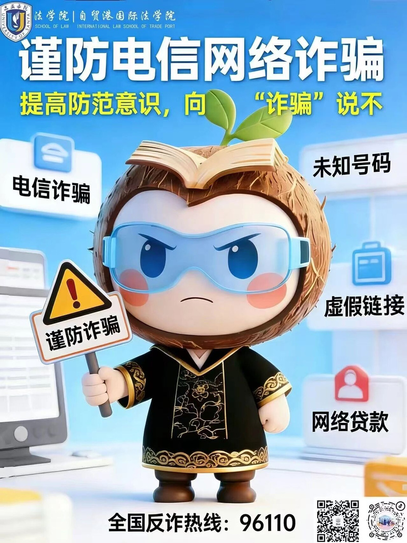 法学院(自贸港国际法学院)(以下简称“我院”)高度重视学生反诈教育工作,将持续开展形式多样的防诈宣传,通过主题班会、专题讲座、案例警示、线上推送等方式,普及防骗知识,增强学生识别和应对诈骗的能力。同时,建立家校联动机制,提醒家长关注子女异常情况,共同筑牢防诈安全防线。