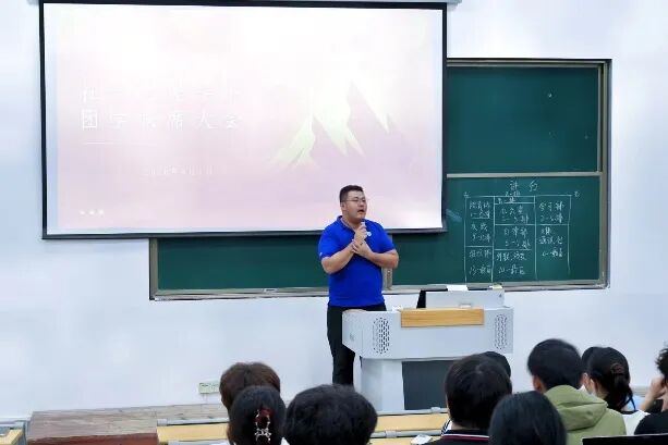 会议现场气氛热烈庄重。曹添老师热情欢迎全体团学骨干参会,详细介绍社会治理学院设立的背景与意义,表达对新团学组织建设的重视与期待。随后,蒋正喜老师具体介绍新团学组织结构,从学院发展全局出发,为新一届团学组织明确工作重点、指明工作方向。
