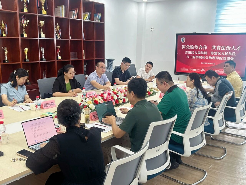 为深入贯彻党和国家关于加强新时代法学教育的相关意见,创新新时代法治人才培养体系,三亚市吉阳区人民法院党组书记、院长周强,海棠区人民法院党组书记、院长柴华一行到访三亚学院社会治理学院。校领导、社会治理学院院长亓元携学院领导班子热烈欢迎。三方与会人员进行深入交谈,围绕全链条协同育人、实践教学提质增效、司法实务人才精准供给等方面深入交流,达成全方位合作共识,共同开启校地协同培养新时代高素质法治人才新篇章。