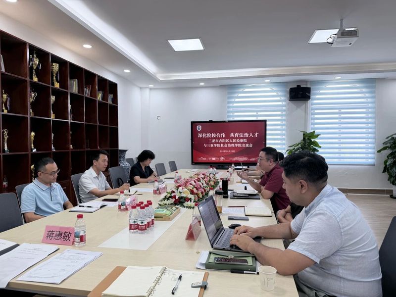 为深入践行“333”育人理念,积极响应海南自贸港法治建设需求,社会治理学院着力搭建全链条协同育人机制 ,打造自贸港法治人才培养新高地。2026年4月20日,三亚市吉阳区人民检察院党组书记、检察长李兴华一行到访三亚学院社会治理学院。校领导、社会治理学院院长亓元携学院领导班子热烈欢迎。双方围绕全链条协同育人机制构建、法学人才分类培养、实践教学创新等议题展开深入交流,达成多项合作共识,共同开启校地协同培养新时代高素质法治人才新篇章。